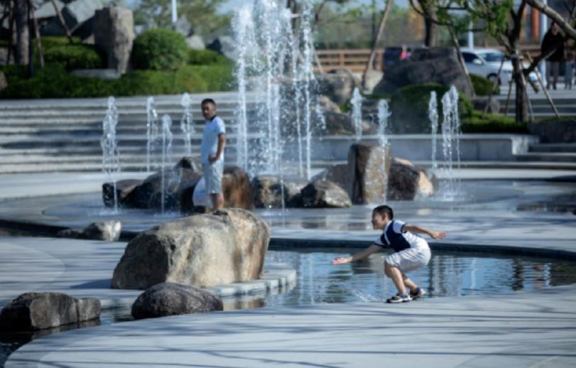 ???? 圓,其形包容,每個角度都可以呈現(xiàn)同樣的立面,易隱而融于環(huán)境;其弧流動卻無方向,亦動亦靜,或是永恒。流水潺潺,沄沄吐玉,水流由四周匯集,璀璨透明的水柱涌漾而起。陽光將水中生機照得如瑩潤珠玉,送于中心相會,又瞬的四散蔓延,生命同江匯攢動。還記得童年時zui喜歡的就是在水邊嬉戲,好像這流動的清澈對孩子們有莫大的吸引力。伸出小小的手掌試探著觸摸水流,感受著清涼的肆意,笑容瞬間綻放。旁邊的阿爺在此時總是看著我露出笑意。一條活潑蜿蜒的水軸,在中心景觀區(qū)中活潑的游走,在豐富了核心區(qū)域的功能外,給整個空間也加上了一筆靈動的色彩。
