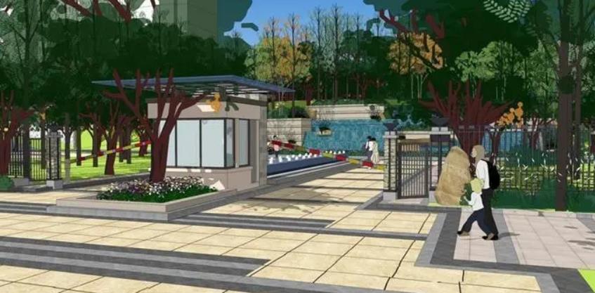 在設(shè)計(jì)住宅區(qū)的入口時(shí),首先要考慮的是人員和貨物的流動(dòng)。除了一般通告功能外,它還具有指導(dǎo)和安全性的功能要求。一般來說,入口景觀設(shè)計(jì)不僅要有對外交流,還要有內(nèi)部防衛(wèi)守護(hù)保護(hù)作用。